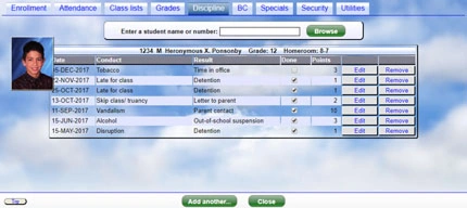 • View and edit a student’s complete discipline history (for current and previous school years).