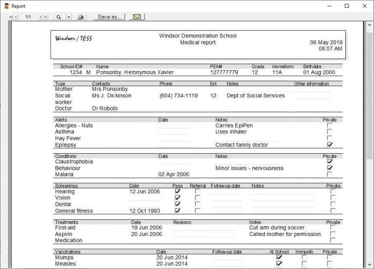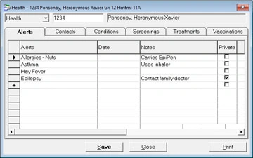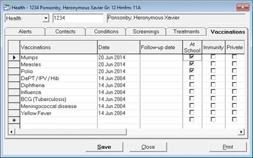 Health System enables your school to track important student health data and generate timely and informative reports, including individual student health summary reports. Health records are protected from unauthorized users through TESS Security.