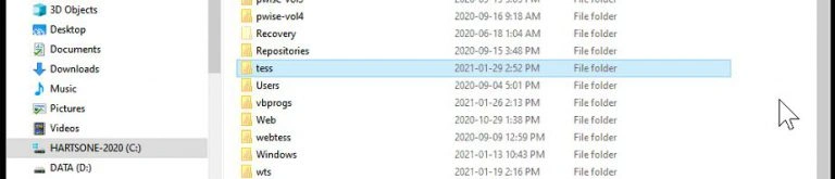 When TESS is installed, it is usually installed on the C: drive of your PC, either in C:\TESS\ or C:\Program Files\TESS