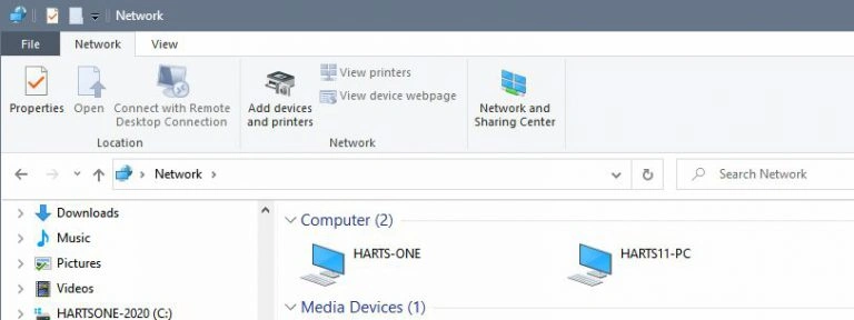 In the Network folder you will see the main computer (for example Harts-one) – on your network it will be different.